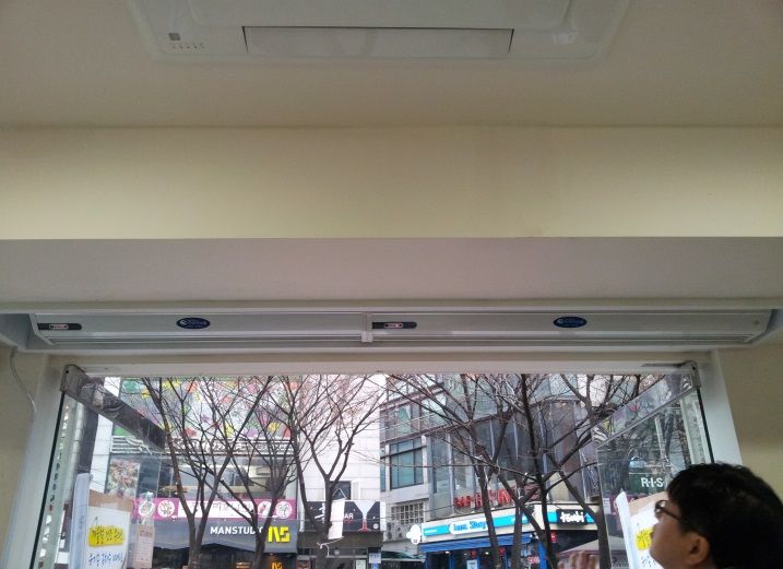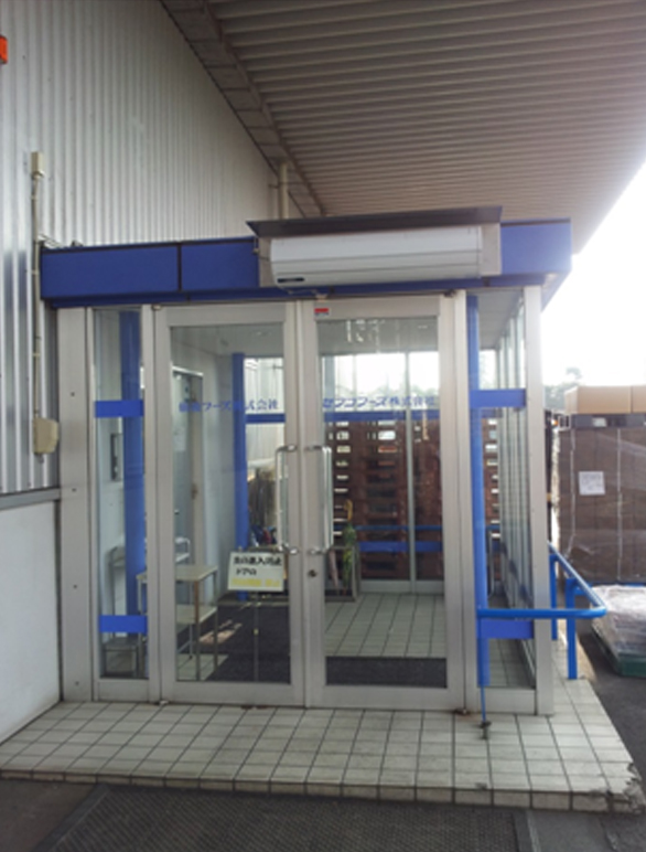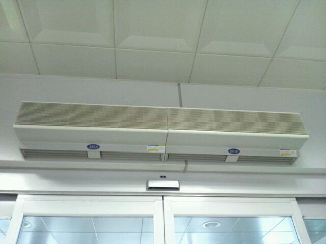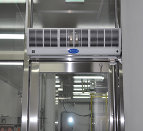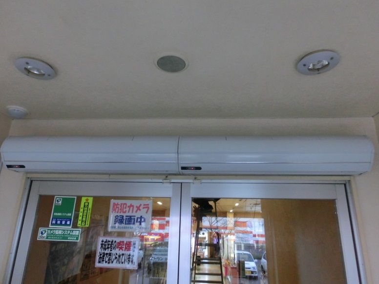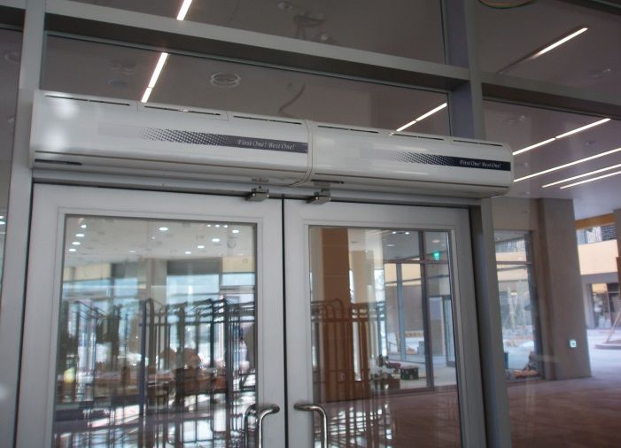 エアーカーテンで暖気の流失を防ぎます。